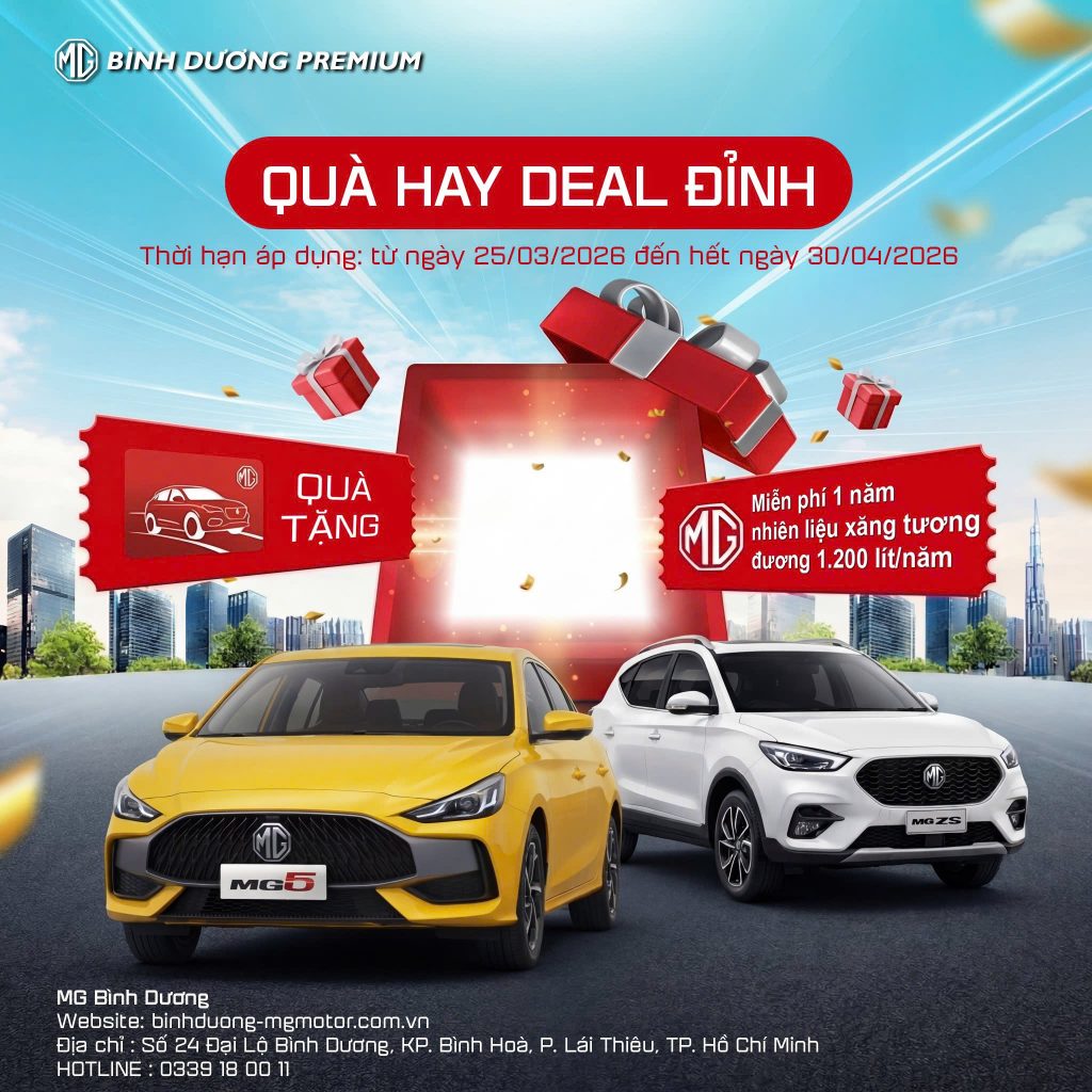 SĂN “QUÀ HAY DEAL ĐỈNH” CÙNG MG BÌNH DƯƠNG PREMIUM: TẶNG 1 NĂM NHIÊN LIỆU CHO MỌI DÒNG XE!